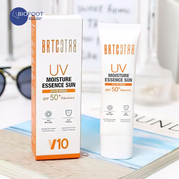 - Shields the skin from UV damage and prevents sunburn. BRTC Moisture Essence Sun provides sun protection without stickiness