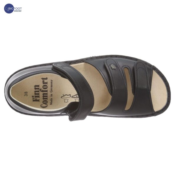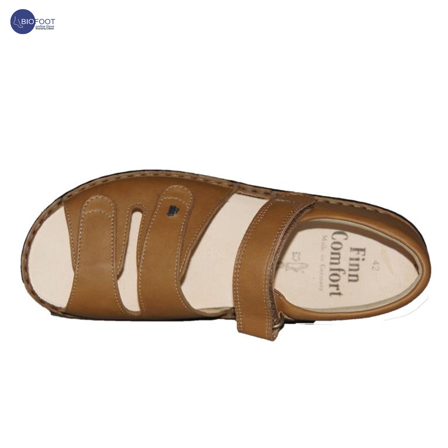 - German made Sandal with removable leather covered foot bed and triple Velcro fastenings. The Velcro fastenings allows for almost limitless fittings to accommodate most foot shapes and sizes.