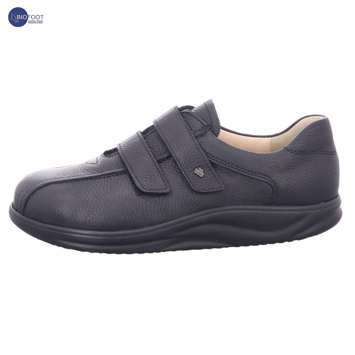 The Finn Comfort Cambridge Men’s shoes are handcrafted in Germany. These black leather shoes have great breathability, thanks to the finest upper leather. Anatomically shaped, leather interior. The hook and loop strap closure makes these men’s shoes adjustable, very comfortable and easy to put on. These classic shoes feature a flexible, shock-absorbing polyurethane sole. The Cambridge features the Finn Comfort removable Soft footbed which provides a cloud-like feel. Even with sensitive feet, you can walk around and enjoy your day in carefree comfort. Numerous unique features allow perfect foot support without any pressure whatsoever.