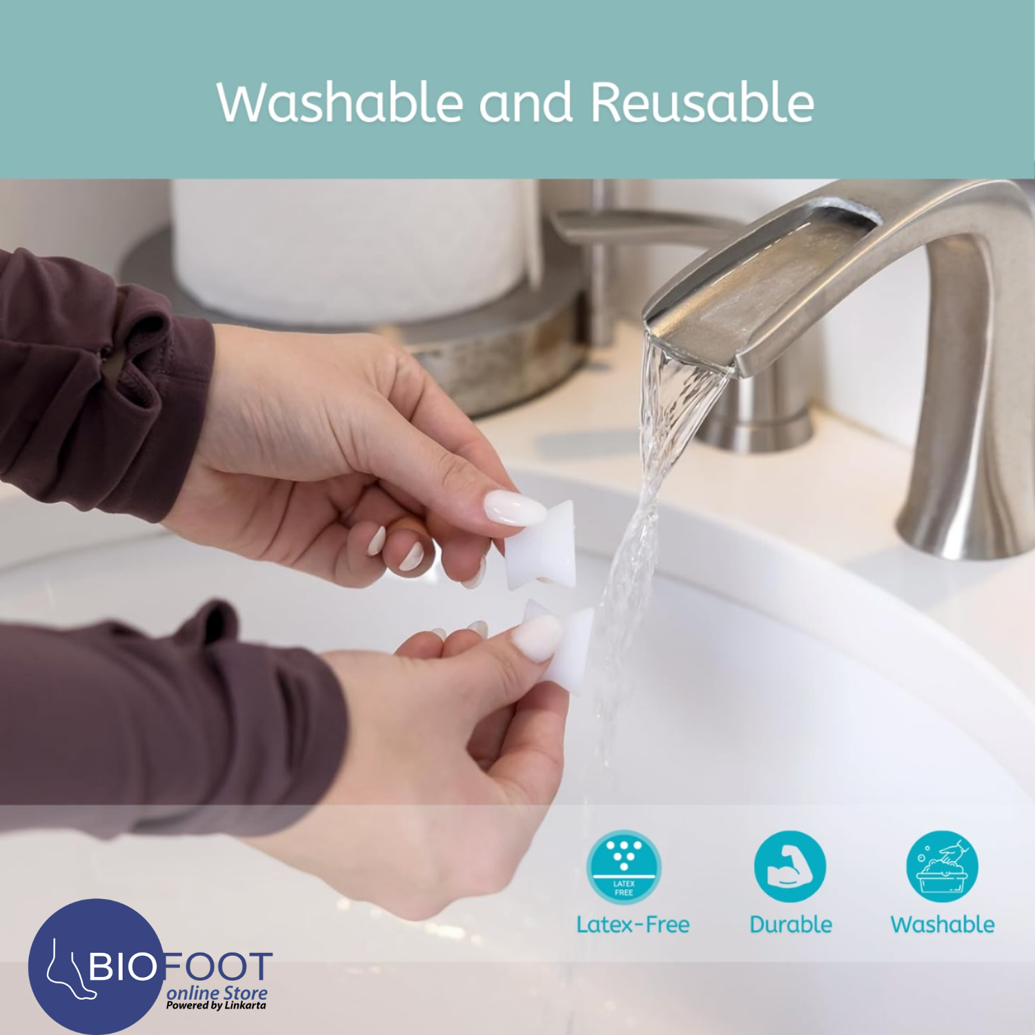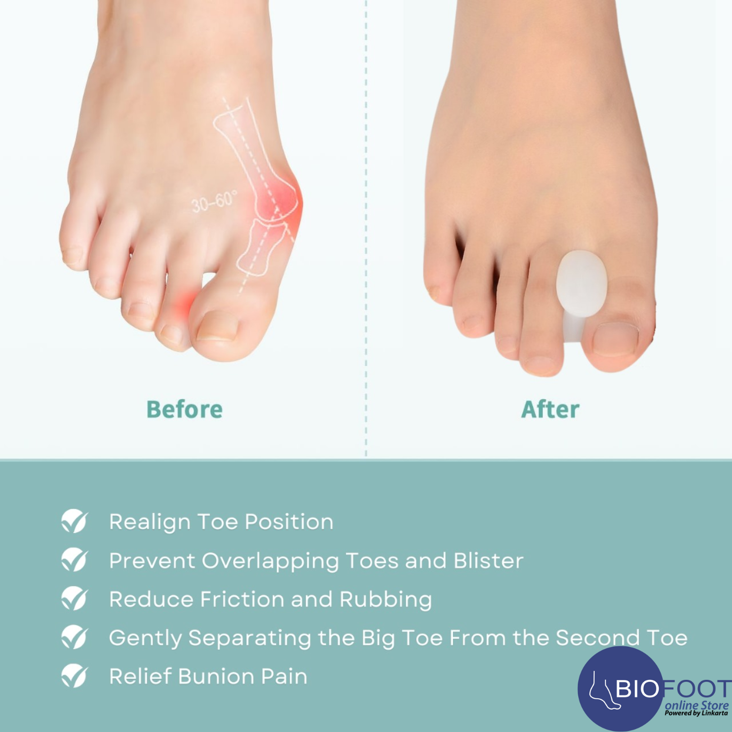 - MEDICAL-GRADE SILICONE GEL: Made from soft, durable, and flexible gel silicone, our bunion separators are odourless and gentle on the skin. They are easy to clean, washable, and reusable, ensuring long-lasting comfort and hygiene.
