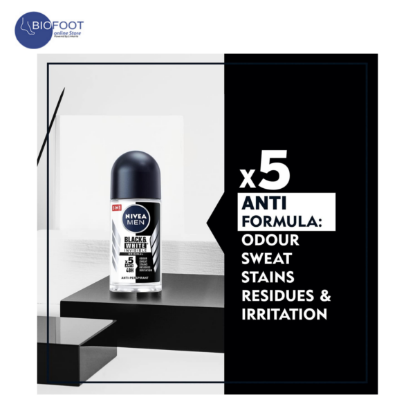 NIVEA MEN Antiperspirant Roll-on for Men, Black & White Invisible Protection Original , 50ml