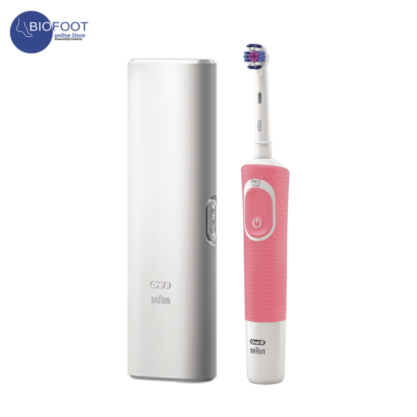 The Oral-B vitality 200 electric toothbrush provides a clinically proven clean versus a regular manual toothbrush, for a dentist clean feeling. Inspired by professional dental tools, the Vitality 200 3D White toothbrush head is designed to clean tooth-by-tooth. It has a specially designed polishing cup to help remove surface stains while bristles clean away plaque and is ideal for enhanced cleaning and whitening. An in-handle quadrant timer vibrates every 30 seconds to help you brush for the dentist-recommended 2 minutes. This pack includes one 3D white toothbrush head and a travel case. Brought to you by Oral-B – the no.1 brand used by dentists worldwide.